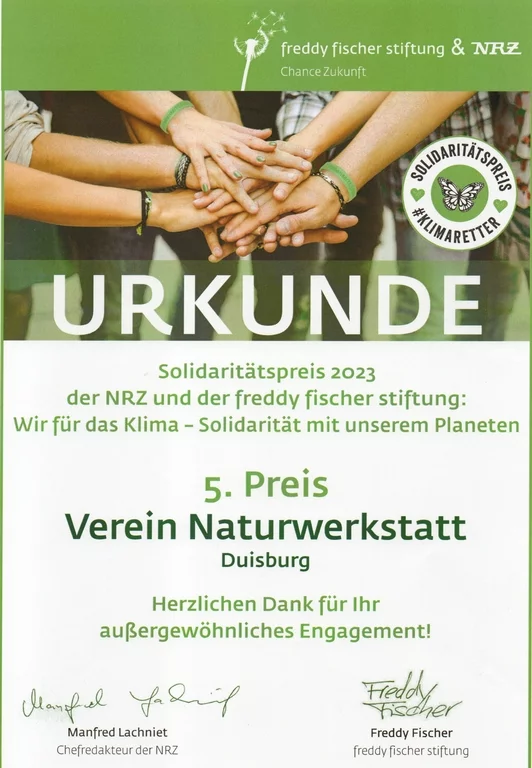 - 2023 mit dem dem "Solidaritätspreis 2023" der Freddy Fischer Stiftung und der NRZ